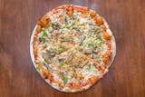 Hand-shredded mozzarella, peppers, onions, mushrooms, and artichoke hearts.