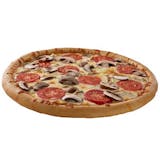 Pepperoni, Italian sausage, and mushrooms topped with Parmesan cheese and Italian seasoning.