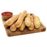 Topped with garlic butter and grated Parmesan cheese. Served with pizza sauce.