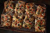 Three orders of freshly baked Detroit-style deep dish dough with butter, cinnamon sugar & topped with vanilla icing. 120 cal/pc