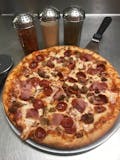 Pepperoni, mushrooms, sausage, green pepper, onion.