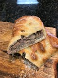 Thinly sliced seasoned steak, white American/Swiss cheese blend with a touch of A1.