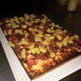 BBQ sauce, ham, bacon, grilled chicken, pineapple, red onions & cheese.