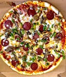 Shawarma sauce, marinated chicken, onions, tomatoes, cajun crust.