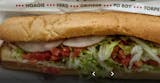 Piled high with provolone, lettuce, tomatoes, Italian dressing