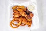 (3) Wing Dings • (3) Mozzarella Sticks • (3) Hot Poppers, (3) Broccoli Cheddar Bites • (8) Onion Rings.