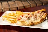 Thinly sliced steak, grilled together with green peppers, onions, and mushrooms. Topped with swiss cheese.