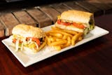 Thinly sliced grilled steak, topped with lettuce, tomato, onion, mayo, and Swiss cheese.