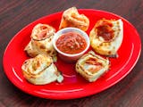 Homemade pizza dough tossed with garlic butter and parmesan cheese