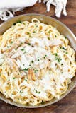 Delicious & creamy homemade alfredo sauce tossed with fresh sautéed shrimp, strips of chicken breast, & served over any pasta of your choice, topped with our homemade alfredo.