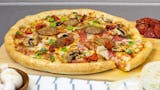 Sarpino's traditional pan pizza is baked to perfection with our signature cheese blend and the freshest ingredients. Sarpino's pizza sauce, pepperoni, salami, italian sausage, canadian bacon, ground beef ,signature cheese blend.