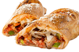 Sarpino's Pizza Sauce • Italian Sausage • Green Bell Peppers • Onions • Signature Cheese Blend • Wrapped in a golden-brown crust, brushed with garlic butter, and sprinkled with Parmesan Cheese. Comes with your choice of dipping sauce.