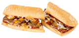 Canadian Bacon • Onions • Sliced Tomatoes • Romaine Lettuce • Signature Cheese Blend • Your Choice of Sauce. Served HOT on your choice of local bread.