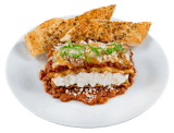 Lasagna layered with seasoned ricotta mix topped with parmesan cheese and our signature cheese blend with your choice of house made meat sauce, vegetarian sauce or alfredo sauce. Served with an 8" garlic breadstick.