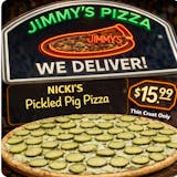 Cream Cheese, Canadian Bacon, Pickles, Garlic and Cheese. Served with a side of pizza sauce.