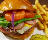 Angus patty, smoked ham, mozzarella & American cheese, lettuce, tomatoes, onions & our secret dressing.