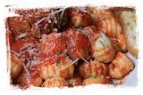 With a blend of Italian cheeses, covered with homemade red sauce.