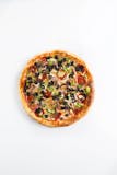 Red sauce, mozzarella, pepperoni, ham, sausage & crumbled meatballs.