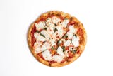 Customer favorites. Red sauce, fresh mozzarella, fresh basil & fresh garlic.