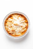 Stacked layers of pasta packed with meat and cheese, covered in red sauce. Pro tip: Go for the crispy edge pieces.
