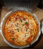 Ziti cooked in marinara sauce & ricotta cheese, them baked with mozzarella cheese.