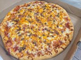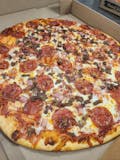 Pepperoni, sausage, beef, mushrooms, green peppers, onions & mozzarella cheese.