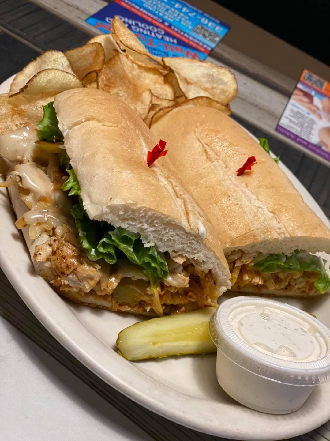 Grilled buffalo chicken, mozzarella, provolone, onions and tomatoes.