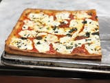 Tomato sauce, mozzarella, pepperoni, fresh basil, and hot honey.