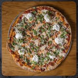Pink vodka, f#ck-tons of smoked cup & char pepperoni, dry aged & smoked mozzarella, pesto ranch.
