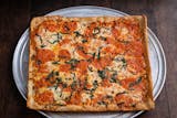 Enjoy our NY-style baked ziti pizza, topped with homemade marinara, ricotta, mozzarella, and perfectly baked ziti. Comfort food meets classic pizza!