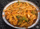 Fry shrimp diablo in red sauce. Served with re fried beans, rice & avocado & 3 soft corn tortillas.