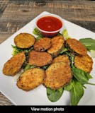 Krispy green olives, 4 mini empanadas 2- chickpea & kale 2- rice & beans & plantains. Served with nashville mayo hot sauce.