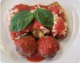 Small lasagna pasta w/ vegan meat & marinara topped with homemade vegan ricotta.