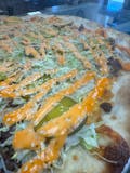 Breaded chicken, bacon & mozzarella cheese topped with ranch.