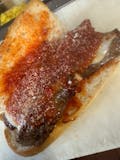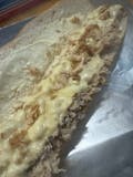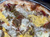 Thin sliced beef, Peppers, mushrooms, onion, American cheese & sauce.