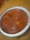 Penne topped with meatballs and marinara sauce.
