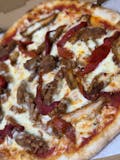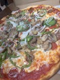 Pepperoni, sausage, peppers, mushrooms, & onions.