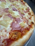 Strips of ham, chunks of pineapple, tomato sauce & mozzarella.