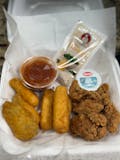Steak, chicken strips, mozzarella sticks, fries, onion rings, cheese & ketchup.