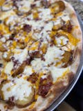 Potatoes, cheddar, bacon & mozzarella. Served with sour cream on the side.