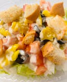 Iceberg Lettuce, Tomatoes, Onions, Banana Hot Peppers, Black Olives, Croutons