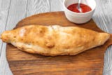 A pizza turnover with sauce and mozzarella cheese. Basic toppings available.