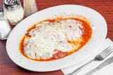 Breaded chicken and homemade pasta tossed in marinara sauce and covered with cheese.