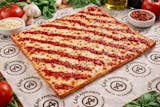 Our Famous Grandma's Original pizza: a square shaped, thin and crispy crust, creamy mozzarella cheese, homemade marinara sauce, and a sprinkle of blended herbs. Each bite is a journey to flavor paradise.