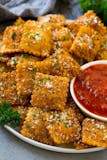 Strips of breaded chicken topped with tomato sauce and mozzarella.