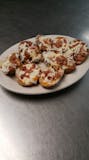 Bread, topped with garlic & olive oil or butter, herb seasoning, baked to perfection. Melts in your mouth and arouses the taste buds.