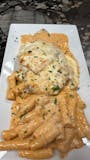 Freshly breaded chicken breast with homemade vodka sauce covered with fresh mozzarella cheese served with pasta