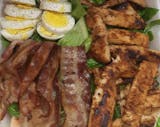 2 pieces of bacon, boiled egg & chicken over mixed green salad.