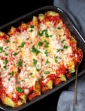 Roasted peppers, mushrooms, olives, eggplant, broccoli, tomato sauce & mozzarella.