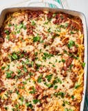 Ground beef, jalapenos, cheddar cheese & taco chips.